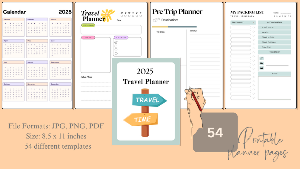 Plan your dream vacations with this comprehensive travel planner. Organize your itineraries, track your expenses, and pack like a pro with our easy-to-use templates. Download instantly and start exploring! πβοΈ